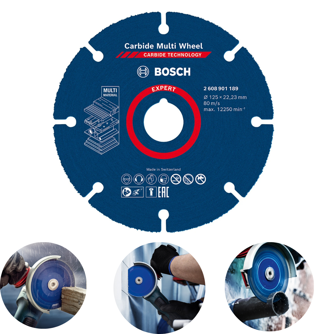 O Bosch Expert Carbide Multi Wheel 125 mm (2608901189) transforma sua esmerilhadeira em uma solução multi-material. Com borda revestida em carbeto (sem dentes), corta madeira (até com pregos), metais finos, alumínio, PVC e derivados com acabamento limpo e poucas rebarbas. A espessura 1,0 mm favorece cortes rápidos e precisos, enquanto o corpo balanceado reduz vibrações. Ideal para manutenção, montagens e reformas que exigem versatilidade e produtividade em um único disco.