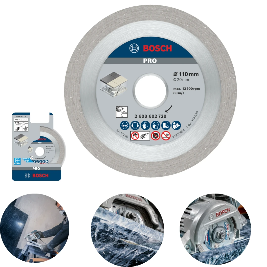 O Disco Diamantado Bosch 110×20 mm (2608602728) entrega cortes finos e precisos em porcelanato, cerâmica e mármore. Com aro contínuo diamantado e espessura de 2 mm, reduz lascamentos e melhora o acabamento, mesmo em materiais duros. Projetado para alto desempenho com até 13.800 rpm, é o aliado ideal para instaladores de revestimento, marmorarias e reformas que exigem qualidade Bosch em cada corte.