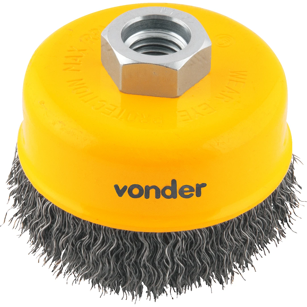 A Escova Tipo Copo Ondulada Vonder 3" é indicada para limpeza e remoção de resíduos em peças metálicas em geral. Desenvolvida para uso em esmerilhadeiras angulares de 4.1/2", oferece excelente rendimento e eficiência no trabalho. Suas cerdas onduladas em aço carbono polido proporcionam maior flexibilidade no contato com a superfície, garantindo resultados rápidos e uniformes em aplicações de desbaste e acabamento leve.