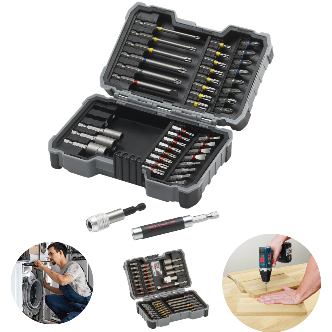 O Jogo de Bits, Pontas e Soquetes Bosch – 43 peças entrega praticidade, organização e durabilidade para aparafusar, perfurar e fixar em diversos materiais. Com encaixe hexagonal 1/4”, é compatível com furadeiras e parafusadeiras. As peças em aço garantem longa vida útil e o estojo compacto mantém tudo organizado, facilitando o transporte no dia a dia de instaladores, eletricistas, marceneiros, serralheiros e DIY.