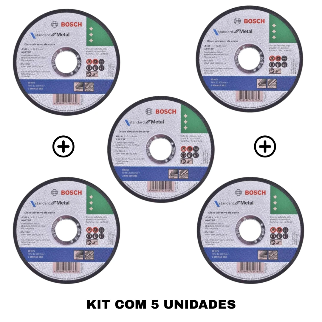 O Kit com 5 Discos de Corte Metal/Inox 115x1,0mm da Bosch é ideal para quem busca cortes precisos e duradouros em metais e inox. Compatível com esmerilhadeiras de 4.1/2", oferece ótimo desempenho e segurança em trabalhos profissionais ou domésticos. Produzido com materiais resistentes, o disco proporciona corte rápido, com menor desgaste e aquecimento reduzido.