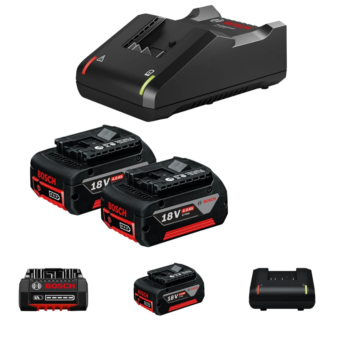 O Kit Bosch 18V com 2 Baterias GBA 4,0Ah + Carregador Rápido GAL 18V-40 Bivolt garante máxima autonomia e eficiência para profissionais que utilizam a linha Bosch 18V.